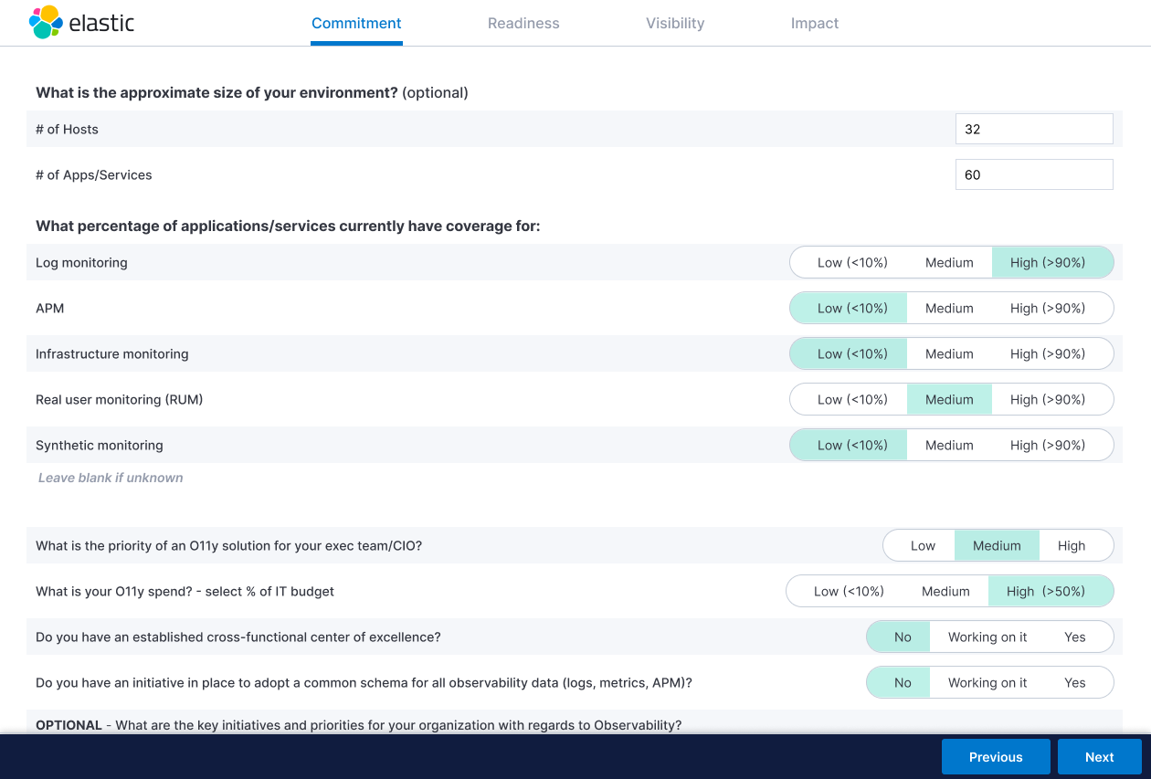 A client’s custom implementation to assess the “maturity level” of its technology clients.