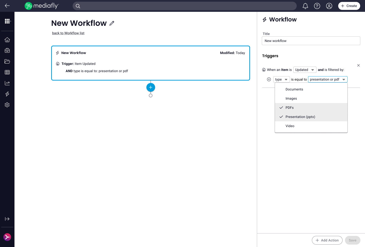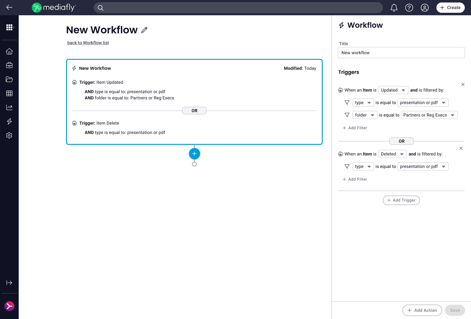 Workflow Workflow design is often complex. This interface was designed to be lightweight. With minimal configuration, Administrators can quickly create “Triggers” on system events and then specify “Actions” to execute when those events occur. View fullsize View fullsize View fullsize View fullsize View fullsize View fullsize View fullsize View fullsize View fullsize Previous Next